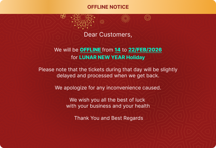 We’re in GMT +7 and we aim to answer all questions within 48 hours (Monday – Friday). Support requests sent during weekend or public holiday will be processed on next Monday or the next business day.